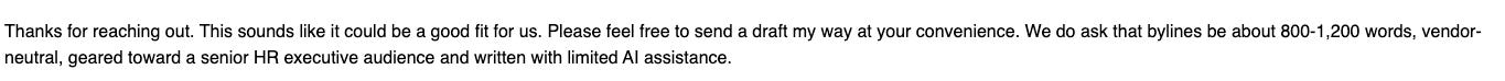My client saw that moment and we moved fast. We pitched an HR publication with this angle: “Who Does the Head of HR Call When the Problem Is the CEO?”